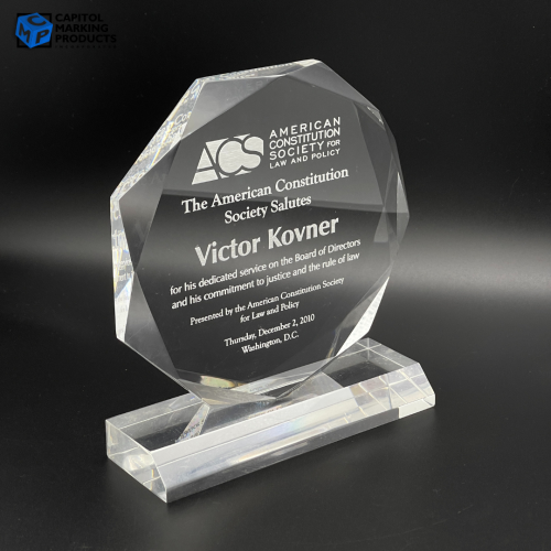 Acrylic Awards are shatter resistant, and provide many of the same characteristics as Glass and Crystal awards at a fraction of the cost. Styles include colored and custom acrylic awards as well as metal accent pieces and mirrored acrylic awards in various color combination. We also offer acrylic plaque awards for hanging on the wall or standing on desktops.
